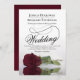 Diese wunderschöne Hochzeitseinladung zeigt ein wunderschönes Foto eines Single, das sich auf einer Seite in bordeauxroter Rose befindet und in einem Wasserbecken mit Wellen und Wellen reflektiert. Das Design verfügt über ein extravagantes Kalligraphieskript mit einem langen, lockigen Schwanz, was es sowohl modern als auch klassisch macht. Elegante, raffinierte und schicke Art und Weise, Ihre Freunde und Familie zu einem besonderen Tag einzuladen. Die Rückseite der Karte hat einen QR-Code für Ihre Hochzeitswebsite und eine kurze Notiz, in der die Leute angewiesen werden, die Website für Details und UAWG zu besuchen.