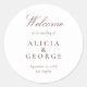 Klassische Kalligraphiepaare, Gastgeschenk Hochzeit- oder Umschlag Aufkleber-Rundaufkleber mit einem dunkelroten, eleganten Typografie-Skript vor einem klaren, weißen Hintergrund. ++++++++ Persönlich mit den Namen der Braut und des Bräutigams und mit Ihrem eigenen Text!