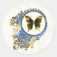Elegante Umschlagaufkleber-Siegel mit unserem goldenen Schmetterlingskleber-Set in einem dekorativen Blau- und Goldkreis. Lieblich wie die Umschlagaufkleber zu den passenden Hochzeitseinladungen.