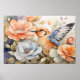 Elegante Butterfly Winged Bird und Blooms Art Poster