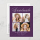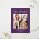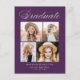 Elegante Graduiertenpartys mit Postkarten mit "Graduate", die oben in einem weißen Kalligrafieschrift mit lila Hintergrund angezeigt werden. Das Design besteht aus vier Fotos des Absolventen, die in einem Collage-Stil mit dem Namen, dem Namen der Schule und dem Jahr des Abschlusses dargestellt sind. Die 4 Foto Graduation Party Postcard laden Umkehrungen, um Ihre Rücksendeadresse Party Details anzeigen. Die schicke Graduiertenparty lädt zu Partys in Oberstufe und Uni-Abschluss ein.