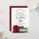 Diese wunderschöne Hochzeitseinladung besticht durch ein atemberaubendes Blumendesign mit lakigem Kalligraphie und einer rote Rose aus Single, die sich an der Seite eines Wasserbeckens befindet. Auf der Rückseite haben Sie Platz, um Details und Informationen sowie einen individuellen QR-Code aufzulisten, um Ihre Gäste zu Ihrer Hochzeitswebsite zu leiten, um Informationen und/oder UAWG zu erhalten. Die Einladung ist so konzipiert, dass sie mit einem Standard- oder Bogenschnitt gut funktioniert. Stilvoll, elegant, elegant, elegant und glänzend, wird diese Einladung einen bleibenden Eindruck hinterlassen und ist eine wunderbare Art, Ihre Gäste zu einem besonderen Tag einzuladen.