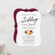 Modernes, elegantes Kalligrafie-Script, Watercolor Burgundy Marsala Floral Wedding Einladung umfasst burgundische Rose, rosa Rosen und Sonnenblumen.