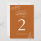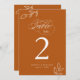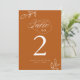 Elegante Kalligrafie Minimalistische botanische Pflanze Leaf Burnt Orange Tischnummer Card.