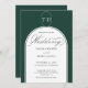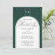 Smaragdgrüne Hochzeitseinladung mit eleganter Schriftzeichen-Kalligraphie, Logostil-Monogramm und modernem Gewölberahmen. Einfache Eleganz, in Grün und Weiß. Die Koordination von Einladungen, Schreibwaren und Veranstaltungsdekoration finden Sie in meiner Sammlung von Wedding Colors. Wenn Sie andere Farben oder zusätzliche Vorlagen für passende Produkte wünschen, bitte schreiben Sie mir, dass ich sie für Sie hinzufügen soll.