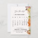 Diese elegante Hochzeit im Herbst-Karte verfügt über einen bearbeitbaren Kalender und einen exquisiten Script-Schriftart mit einem hübschen Herbstdesign. Ändern Sie den Monat und füllen Sie die Daten für jeden Tag des Monats aus. Klicken Sie im Bereich Personalisierung auf den blauen Button 'Bearbeiten mit dem Design-Tool', um das Herz zu bewegen.