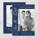 Elegante Calligraphy Navy 2 Foto QR Code Wedding Save The Date