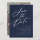 Elegante Calligraphy Navy Foto Hochzeit Save The Date