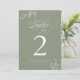 Elegante Kalligrafie Minimalistische botanische Pflanze Leaf Sage Tischnummer Card.