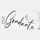 Eleganter Kalligrafie Script Abschluss Graduate Phone Cases bietet ein Wirbles modernes, schwarzes Kalligraphie Skript-Overlay "Graduate" in der modernen Typografie. Personalisiert mit Ihrem Namen und der Detailklasse, indem Sie den Text in den angegebenen Textfeldern bearbeiten. Einfache, stilvolle und stilvolle Abschluss-Sake-Geschenke. Erstellt von ©Evco Studio www.zazzle.com/store/evcostudio