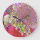 Elegante Chartreuse Green, Pink und Blue Hydrangea Große Wanduhr