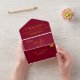 Diese elegante bordeauxrote und goldene Hochzeitseinladung eignet sich perfekt für eine moderne Hochzeit, das schlichte Design zeichnet sich durch elegante Goldkalligraphie auf bordeauxrotem Hintergrund aus.