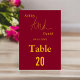 Elegante Chic Burgundy und Gold Calligraphy Weddin Tischnummer