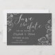 Elegante, silberne Blume auf grauem Hintergrund. Beautibel Save the Date, dass mit Ihrem Namen angepasst werden kann.Wählen Sie den "Anpassen"-Button, um den Schriftart Stil, Farbe und Größe zu ändern.