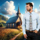 Eine wunderschöne künstlerische Krawatte mit barocken Mustern in eleganten, grauen Farbtönen. Im Muster ist ein Christliches Quersymbol sichtbar.