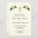 Personalisieren Sie unsere wunderschönen Christlichen katholischen Hochzeitseinladungen mit goldenen Hochzeitsringen mit goldenem Kruzifix und weißen Rosen Elfenbeinhintergrund und alle Texte und Schriftart können modifiziert werden.