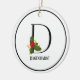 Elegante Christmas Holly Monogram Letter D Keramik Ornament
