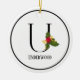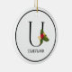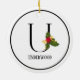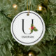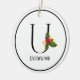 Elegante Christmas Holly Monogram Letter U Keramik Ornament