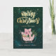 Elegante Christmas Pink Sleigh Green Feiertagskarte