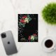 Eine schöne Weihnachtsreise-Weihnachtskarte aus einer hübschen floralen Aquarelltafel, die in Rot-Weiß-Weihnachtstönen gehalten ist, und Lichter, die auf schwarzem Hintergrund und goldfarbenem Folientext dargestellt sind. Alle Texte können individuell angepasst werden - frohe Weihnachten - vielleicht bevorzugen Sie glückliche Feiertage oder Jahresgrüße? Dann personalisieren Sie Ihre persönlichen Daten, indem Sie Ihren Firmennamen oder Familiennamen hinzufügen. Eine spezielle Urlaubskarte, die an Ihre Kunden, Mitarbeiter, Familie und Freunde geschickt wird.