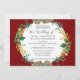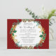 "Elegante Weihnachtswatercolor Gold Holly Wreath Wedding Einladung." Horizontal 5" x 7" Format Layout. Moderne, elegante Aquarellblume mit Kiefernfüßen, Blattgrün, heiligen Blätter und Beeren mit goldgelbem Blattwerk. Der tiefburgundische rote Hintergrund hat eine weiche, goldene Platzierung, die auf der Rückseite wiederholt wird. Das Watercolor Kunstwerk wurde von Audrey Jeanne Roberts, einer international anerkannten Künstlerin, geschaffen. Urheberrecht.