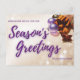 Eine elegante Weihnachtsgrüßkarte mit Zimtsticken und -dekorationen auf funkelnd Hintergrund mit lila Glitzer. Fügen Sie Ihre persönliche Nachricht der Postkarte hinzu und senden Sie sie an Ihre Freunde und Familie.