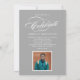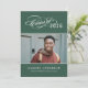 Mit dieser eleganten Script-Abschluss-Ankündigung und Party Einladung kündigen Sie Ihren Uni- oder Highschool-Abschluss in stilvoller Form an. Die zweiseitige Karte verfügt über zwei Fotos des Absolventen, benutzerdefinierte Weißtexte und Akzente in kalligrafischen Schriften. Jäger / Waldgrün und Graufarben können so verändert werden, dass sie mit Ihren Foto- oder Schulfarben abstimmen.