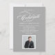 Mit dieser eleganten Script-Abschluss-Ankündigung und Party Einladung kündigen Sie Ihren Uni- oder Highschool-Abschluss in stilvoller Form an. Die zweiseitige Karte verfügt über zwei Fotos des Absolventen, benutzerdefinierte Weißtexte und Akzente in kalligrafischen Schriften. Rote und graue Hintergrundfarben können so verändert werden, dass sie sich mit Ihren Foto- oder Schulfarben abstimmen.