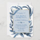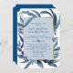 Elegante Classic Blue Blätter Gold Monogram Weddin Einladung