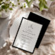 Klassische Einladung zum Hochzeitsfeiern mit schwarz-weißem Blatt.