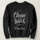Elegantes Halloween individuelle Name Sweatshirt für Damen. Das Design enthält den Text "Classy Witch" in weißer Kalligraphie-Stil Typografie. Macht für das beste personalisierte Halloween-Geschenk für sie (es kann jeder von Ihrer Mutter bis zur Ehefrau sein!). Perfekt, um sie sich ganz besonders zu fühlen, ihr Vertrauen zu stärken und ein einzigartiges und bequemes Geschenk zu bekommen! Wir haben noch viel mehr so elegante Halloween-Designs für jeden, bitte Karo aus unserer Kollektion/Shop! Frohe Halloween!
