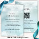 Eine pastellfarbene türkisfarbene Hochzeitseinladung mit Engelsflügeln und Silberherzen auf einem weichen, traumhaften Cloud-Hintergrund. Auf der Rückseite befindet sich eine QR-Codevorlage, um eine All-in-One-Einladung zu erstellen. Ein schöner Ausdruck eines im Himmel gemachten Streiches.