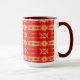 Stall rot mit gemustertem, gelbblütenfarbenem Druck. Der rote Hintergrund des Stalls kann auf jede Farbe umgeschaltet werden. Text kann hinzugefügt werden, um noch mehr personalisieren zu können.