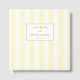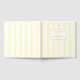 Dieses Hochzeitsgästebuch verfügt über ein minimalistisches und modernes Design mit vertikalen cremefarbenen und blassgelben Streifen, die einen eleganten Kontrast erzeugen. Die Gestaltung zentriert sich um einen kleinen goldgerahmten Rahmen, der die Namen "Lauren und Benjamin" in klassischer Serifenschrift hervorhebt, perfekt zur Personalisierung. Verstreute goldene Konfetti-Akzente verleihen der anspruchsvollen Ästhetik eine festliche Note und machen es ideal für die Feier eines besonderen Anlasses wie einer Hochzeit.