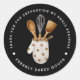Moderne Bäckerei bedankt sich bei Ihnen Aufkleber. Ein niedliches hölzernes Utensilienbraun polka dot potholder Set in der Mitte des Aufklebers, danke für die Unterstützung meines kleinen Unternehmens ist darüber und darunter ist der Name des Unternehmens.