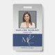 Mit diesem eleganten Custom Silver Navy Blue Employee Abzeichen, das ein personalisiertes Foto, einen Namen, einen Titel und Ihr Firmenlogo bietet, wird das berufliche Erscheinungsbild Ihres Teams noch verbessert. Der elegante marineblau-blaue Hintergrund gepaart mit einem raffinierten silbernen Design schafft einen hochwertigen, konsistenten Look, der Ihre Markenidentität stärkt. Dieses Abzeichen eignet sich ideal für Firmenbüros, Einzelhandel, Gastfreundschaft, Gesundheitswesen und Veranstaltungen. Es ist funktional und stilvoll eingerichtet und macht Ihre Mitarbeiter leicht erkennbar, während Sie gleichzeitig Ihr Image verbessern. Wählen Sie aus Clip, Button oder Magnetband für bequemen täglichen Tragekomfort.