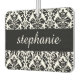 Fügen Sie Ihrem hübschen Design Ihren Namen oder ein Monogramm mit Blume und Blätter in einem klassischen Damast-Muster hinzu.