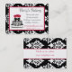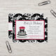 Elegante kundenspezifische Bäckerei-Visitenkarte getan mit einem Schwarzweiss-Damastrahmen und einem dunklen malvenfarbenen Akzent. Grafiken einer reizenden Schwarzweiss-Hochzeitstorte verziert die Front der Karte. Vervollkommnen Sie für ein Bäckereigeschäft, Partygeschäft oder einen unabhängigen kundenspezifischen Bäcker. Fertigen Sie die Textfelder besonders an, um für selbst oder Ihr Geschäft zu personifizieren.