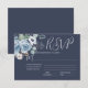 Elegante Dark Blue & White Floral Wedding RSVP Car Karte