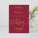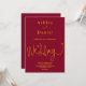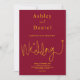 Diese elegante bordeauxrote und goldene Hochzeitseinladung eignet sich perfekt für eine moderne Hochzeit, das schlichte Design zeichnet sich durch elegante Goldkalligraphie auf bordeauxrotem Hintergrund aus.
