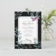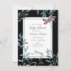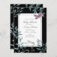 Dieses elegante Brautparty verfügt über zwei Aquarellbilder, eine in Blau- und Grüntönen mit leuchtenden Flügeln und die andere mit Flügeln in lila und rosa Tönen. Sie befinden sich in einer einfachen Anordnung von Grünpflanzen in den Farben Grün, Blau, Grau und Braun auf schwarzem Hintergrund. Es ist ein großartiges Design für Mädchen und neutrale Party.