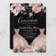 Elegante Rose Gold Glitzer Kleid und Blume auf einem schwarzen Hintergrund.