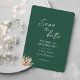 Elegante, dunkelgrüne Save the Date Flachkarte