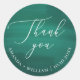 Elegantes Drehbuch Hochzeit danke Ihnen Aufkleber mit in dunkelgrünen Smaragd, Tiefsee grüne Farben. Geeignet für Sommer Wald / Wald oder Grüne Hochzeit Thema.