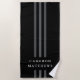 Strandtuch mit drei dunkelgrauen Linien, die von oben nach unten laufen und Ihr Name überqueren.