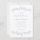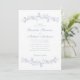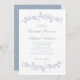 Elegante Hochzeitseinladung mit verzierten Vintagen Aquarellbändern, bestehend aus staubblauen Chinoiserie-Blumen und Blätter. Die Namen der Braut und des Bräutigams befinden sich in einem staubblauen Skript, und die Einzelheiten der Hochzeiten sind in einem einfachen, staubigen, blauen Buchstaben. Ideal für Paare, die sich die populäre, großtausendjährige Ästhetik zu Eigen machen und die Romantik vergangener Zeiten mit einer erfrischend zeitgenössischen Touch verbinden.