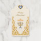 Diese Feiertage, feiern Sie Liebe und Licht zur Zeit des Schenkens mit einem wunderschönen und eleganten goldenen Geschenkanhänger aus Goldfolie, der Ihren guten Geschmack zur Schau stellt und Ihren Hanukka-Geschenken eine besondere Note verleiht. Der exquisite Anhänger enthält eine anpassbare Nachricht, ein Sternen-Set, ein kleines Herz oben und Platz für Ihren Familiennamen, alles gestaltet in atemberaubender Goldfolie. Auf der Rückseite finden Sie eine gedruckte Designillustration einer Ornamentik im klassischen Stil, einer Menora und die anpassbare Nachricht "Frohes Hanukka" vor einem eierschalenweißen Hintergrund. Diese Bereiche zur Personalisierung, einschließlich der Bilder, ermöglichen es Ihnen, ein einzigartiges und bedeutungsvolles Design für die Hanukka-Feierlichkeiten zu erstellen. Dieses Design wurde sorgfältig mit Bedacht gestaltet, um einen minimalen Aufwand für die Personalisierung zu erfordern, um Ihre Be