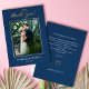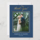 Dieses einfache und minimalistische Foto mit Dankeschön-Karte zeichnet sich durch einen eleganten goldenen Schriftzeichen aus, der zwischen den Begriffen "Danke" und "Danke" eine Herzlichkeit hat. Sie können das Design personalisieren, indem Sie die Namen der Braut und des Bräutigams, das Datum, die Nachricht an Freunde und Familie und Ihr Lieblings-Foto hinzufügen. Diese Karte ist Teil meiner Colorful Gold Tropical Lily Wedding Collection; schauen Sie bitte in meiner Sammlung nach, um weitere passende Hochzeitsartikel zu erhalten. Die Karte ist in vier Hintergrundfarben erhältlich: aquamarin, blau, schwarz und weiß.
