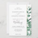 Diese moderne und schlichte Frühjahr- oder Sommerhochzeit-Einladung zeigt eine klassische und zeitgenössische Abbildung der wunderschönen Aquarellröhren-Eukalyptus-Blätter auf der rechten Seite, die mit einer exquisiten Goldgrenze aus Imitaten versehen ist. Diese Einladung ist Teil der Kollektion "Elegant Eukalyptus Wedding", mit koordinierenden und vollständig anpassbaren Gegenständen zu einer einzigartigen Hochzeitssuite.