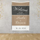Elegantes einfaches, grau-beiges Skript Hochzeit Begrüßungsbanner. Elegantes und modernes Design in beige und dunkelgrau Farben. Trendy Drehbuch in weiß - fügen Braut`s, Groom Namen und Hochzeitstag.